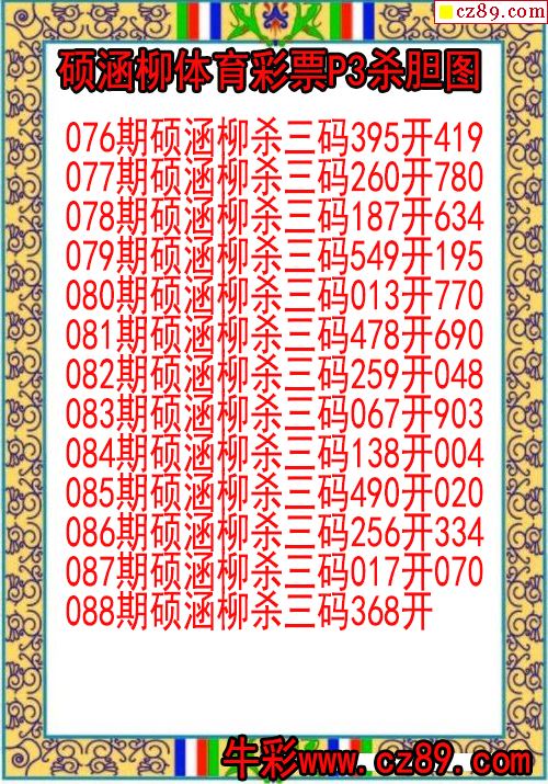 26年088期硕涵柳体育彩票P3杀胆图